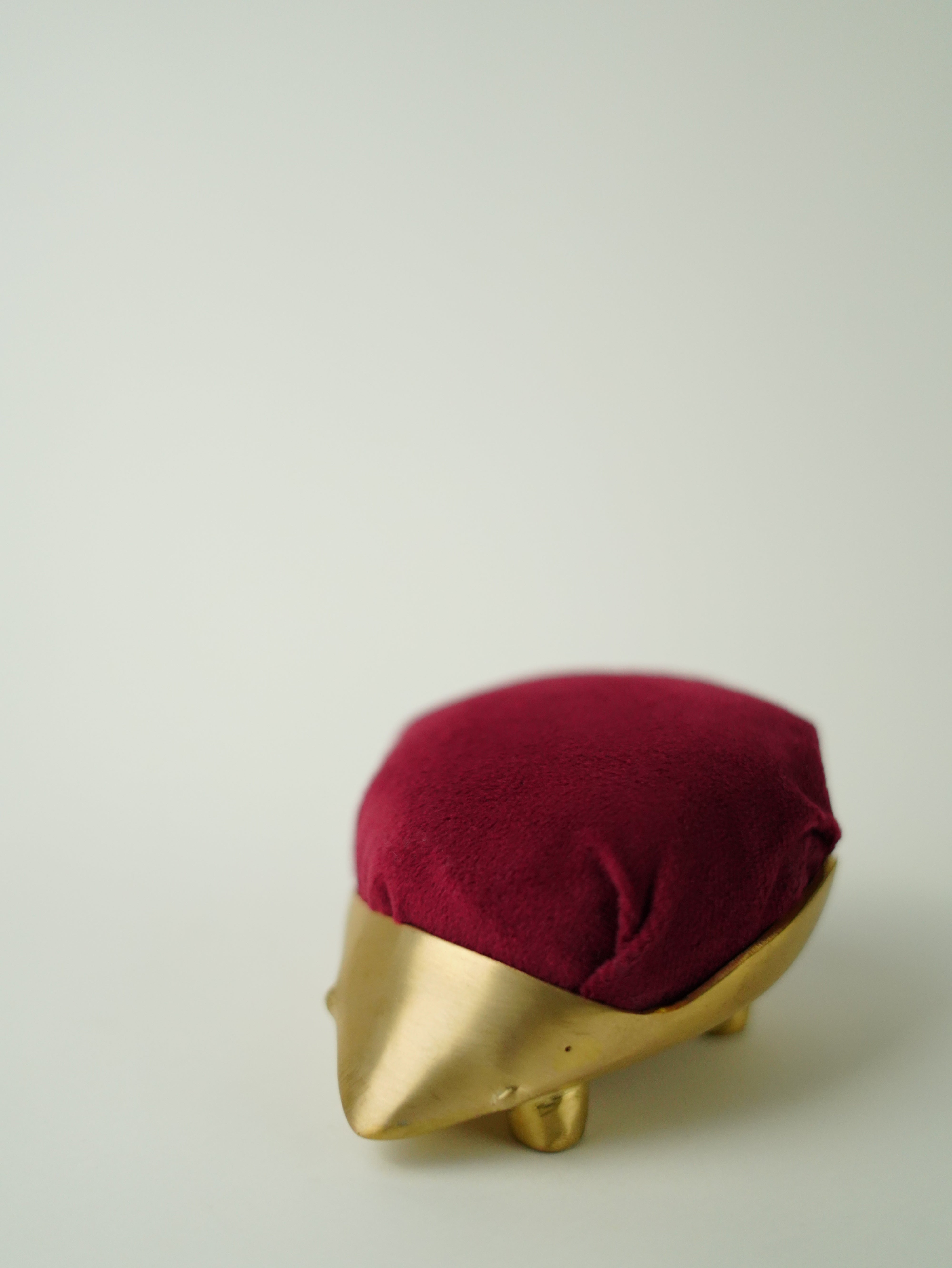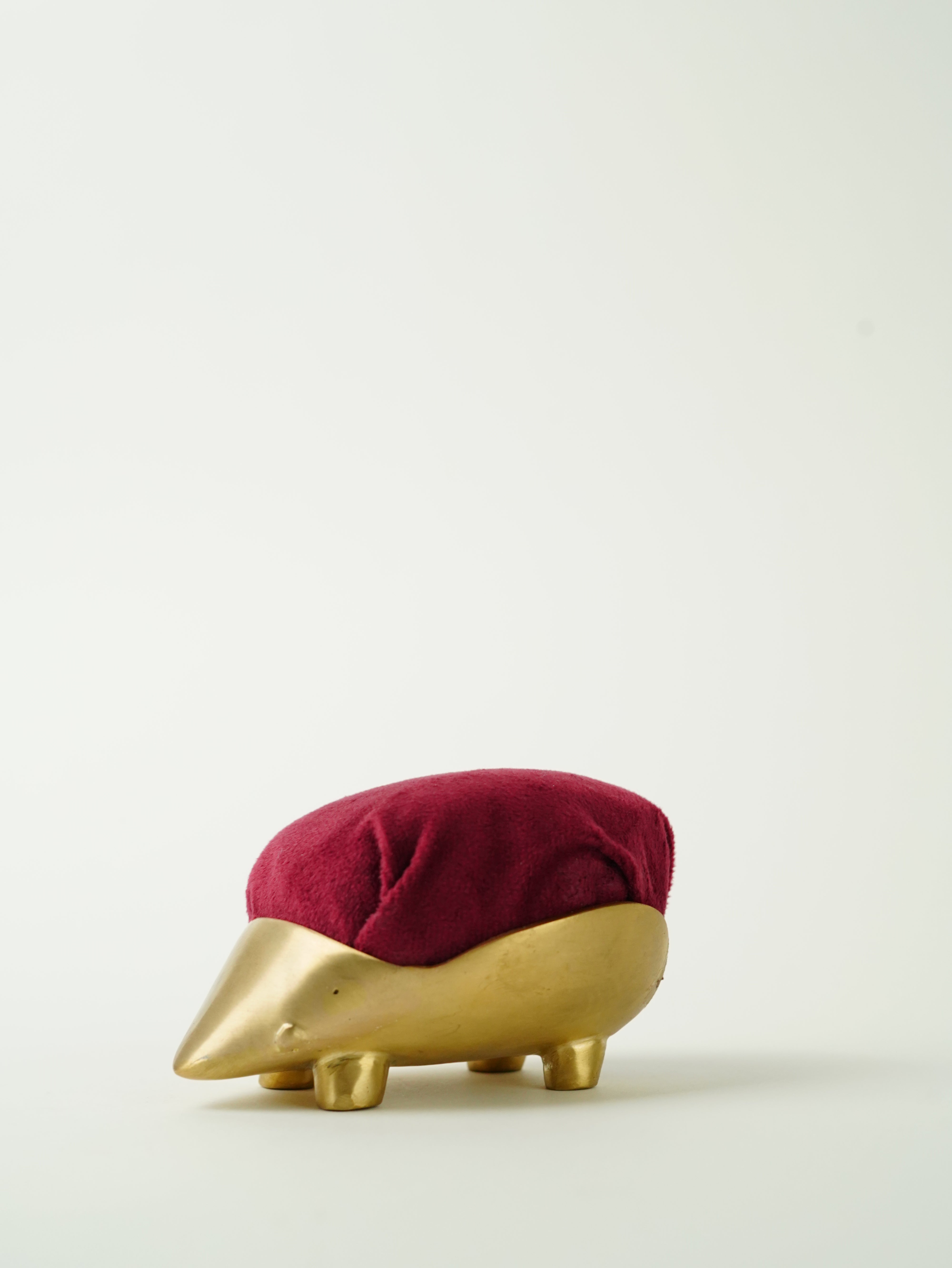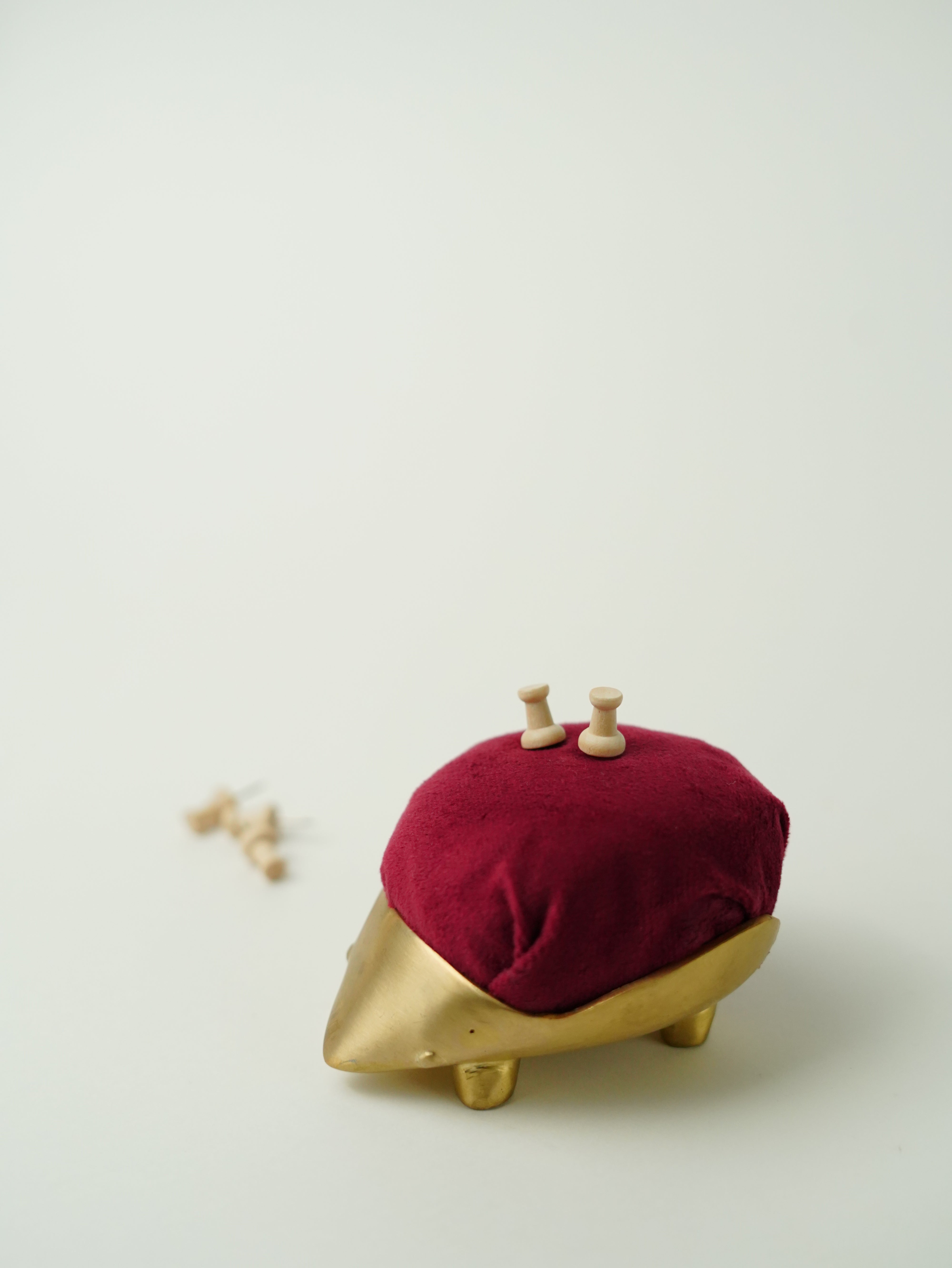 The soft, textured form of the Salyaka pin cushion crafted in the shape of a hedgehog brings a touch of artisanal charm to your workspace while keeping your pins essentials neatly in place.