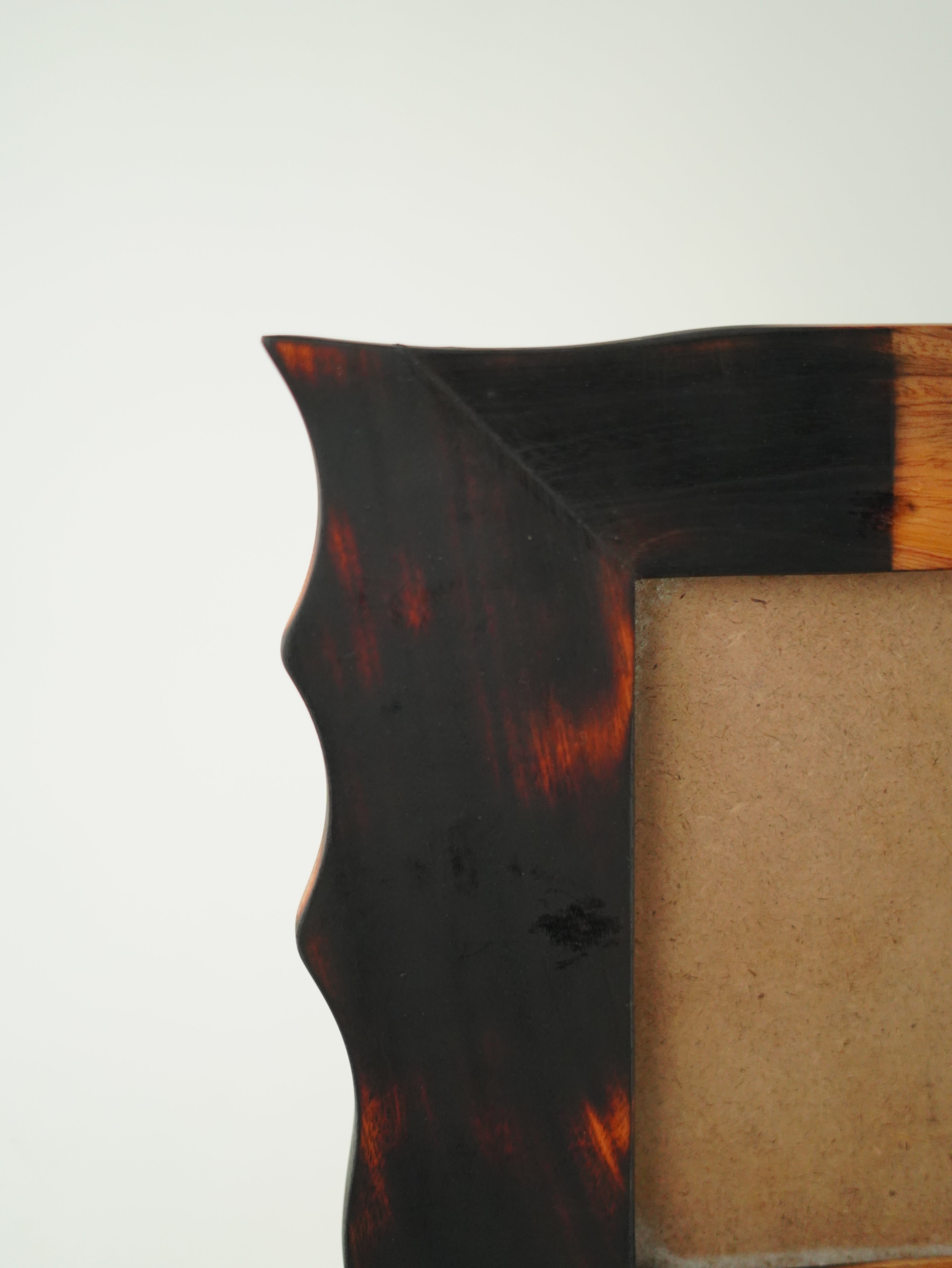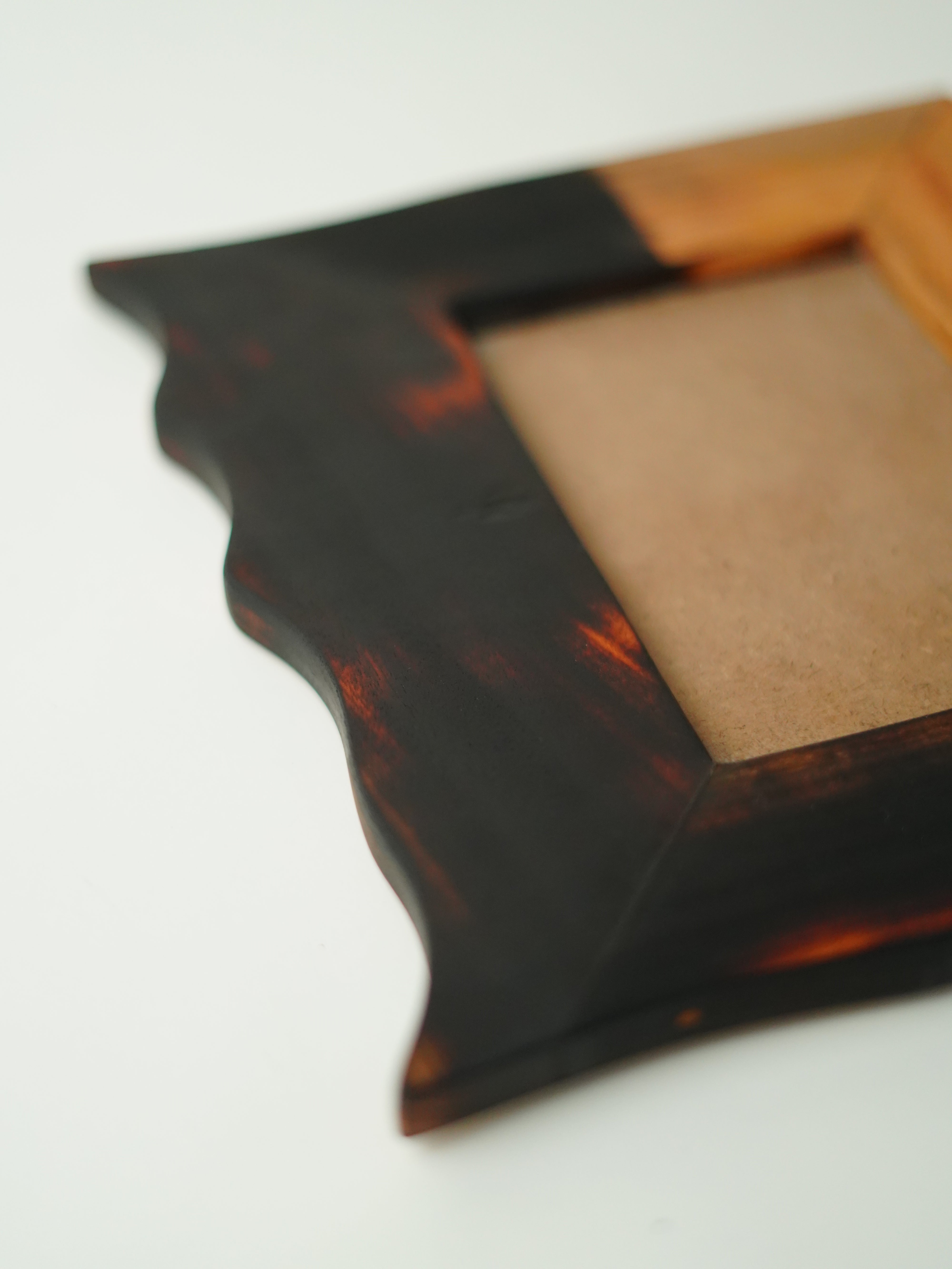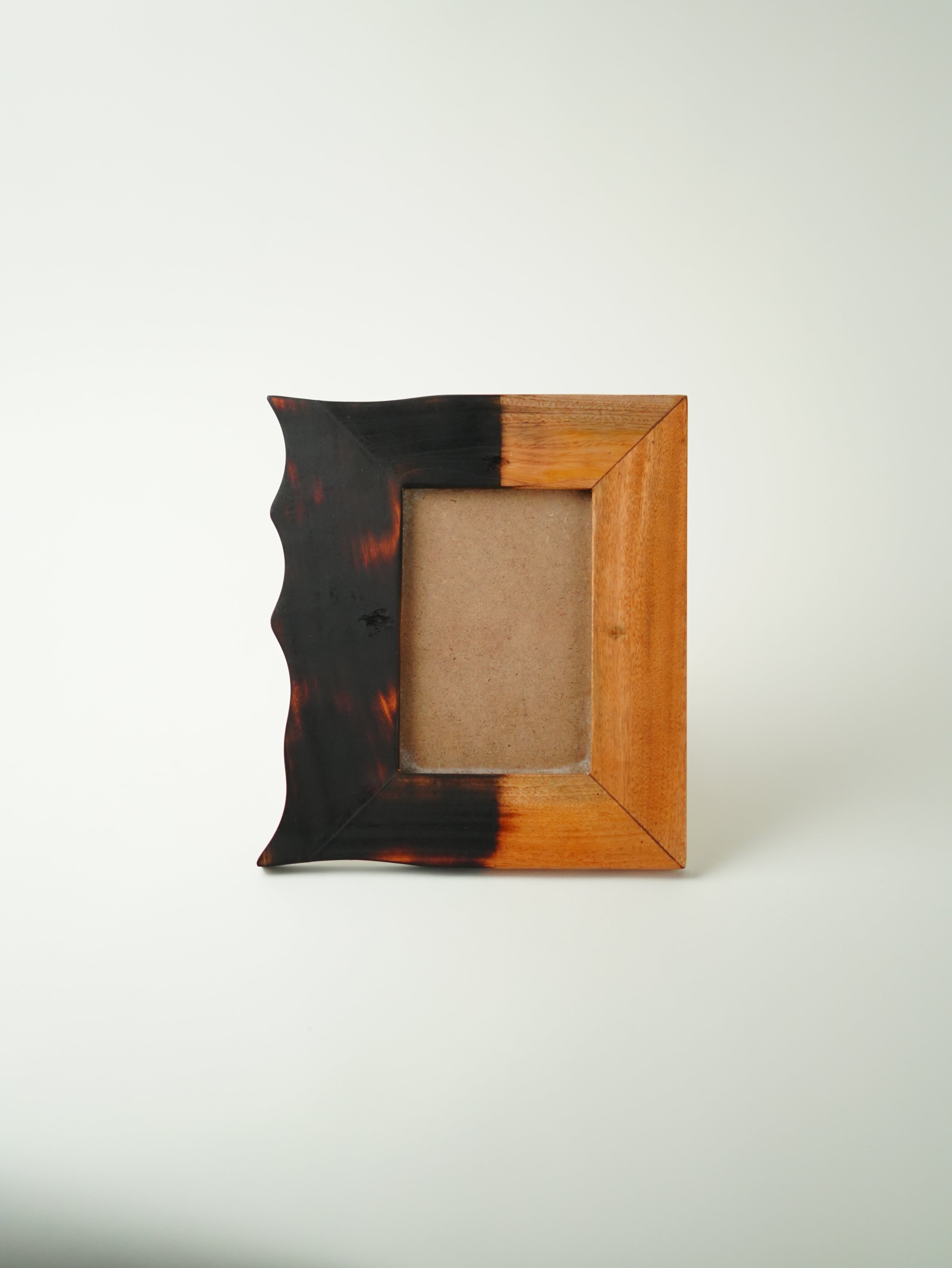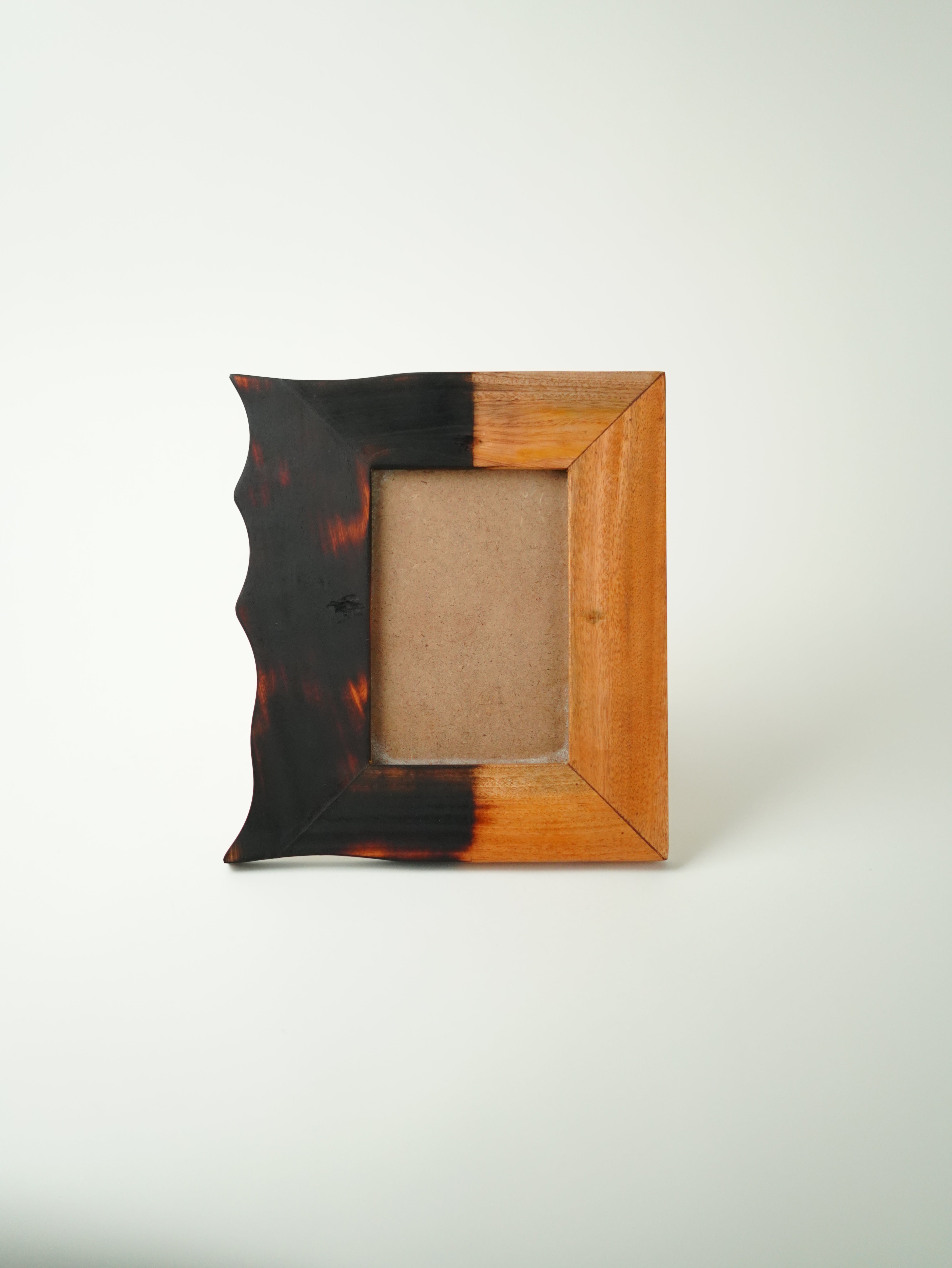The Jwala Frame celebrates the elemental beauty of fire and wood. Handcrafted through a delicate burnt-wood technique, each piece carries unique scorched patterns that tell their own story.