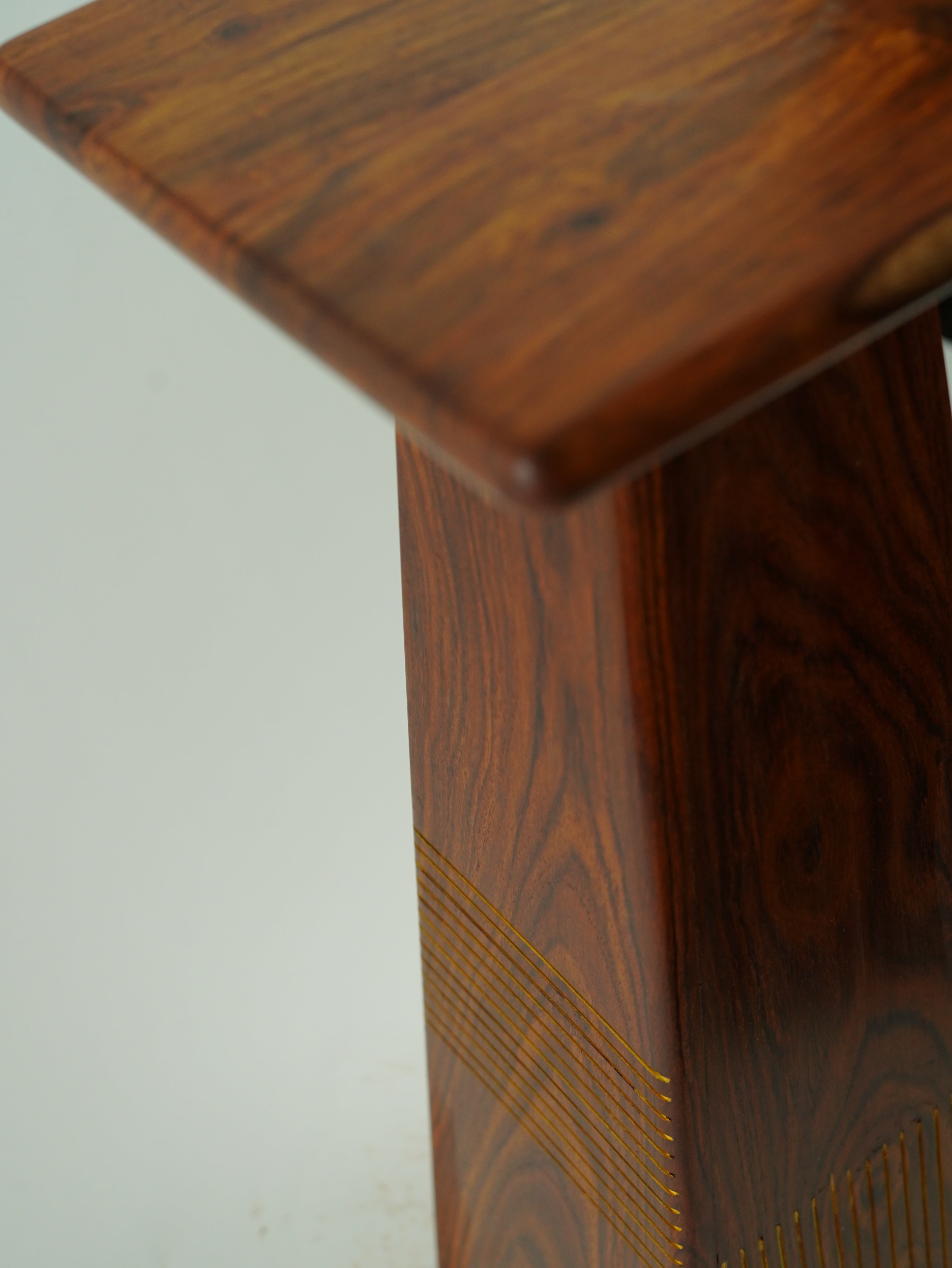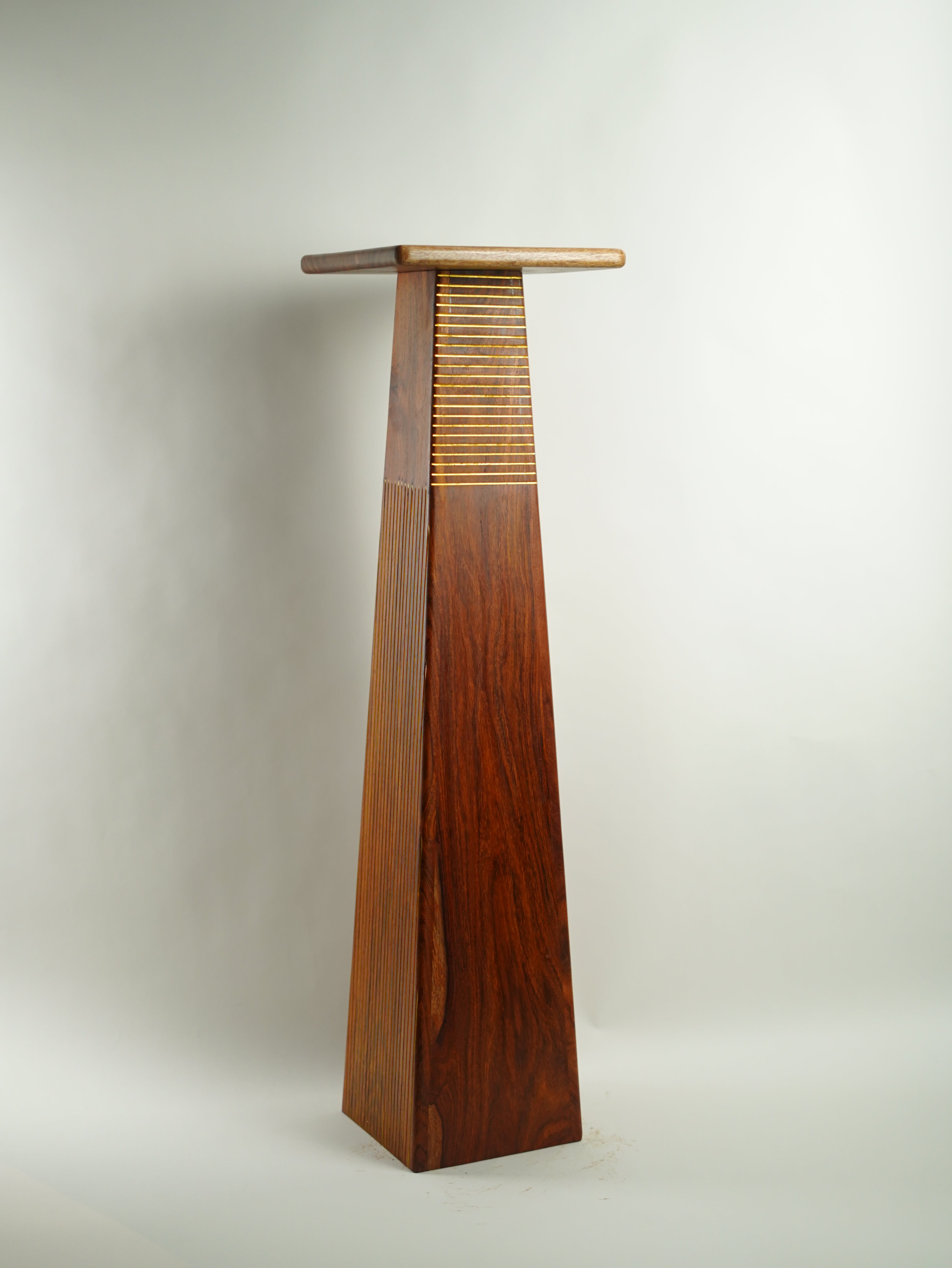 The gold lines on this plant stand vary between horizontal and vertical, giving the piece a different appeal from ever angle.