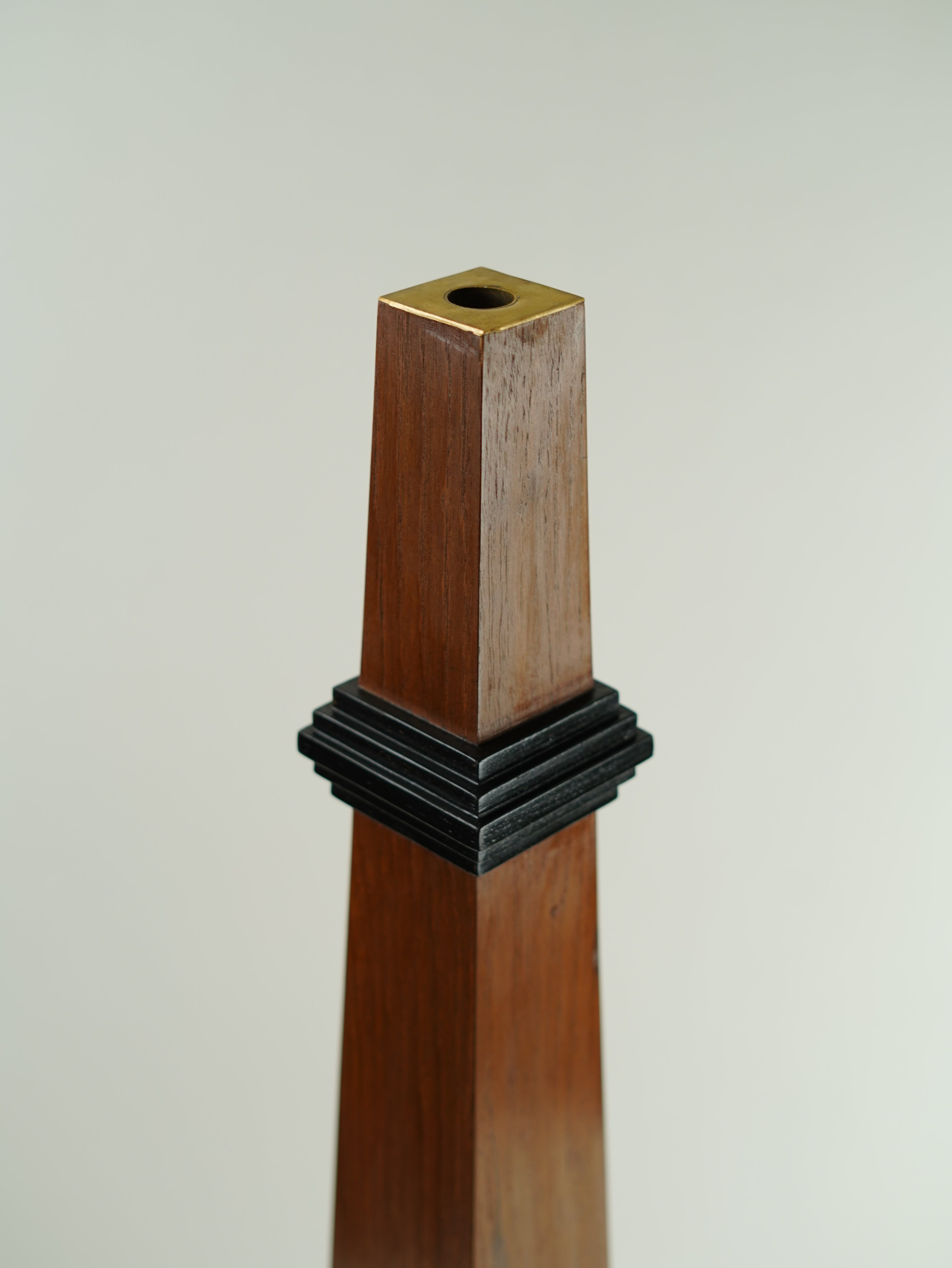 The totem pole is reimagined here in a smaller version with the black step band appearing like a necktie giving the piece a gentlemanly feel.