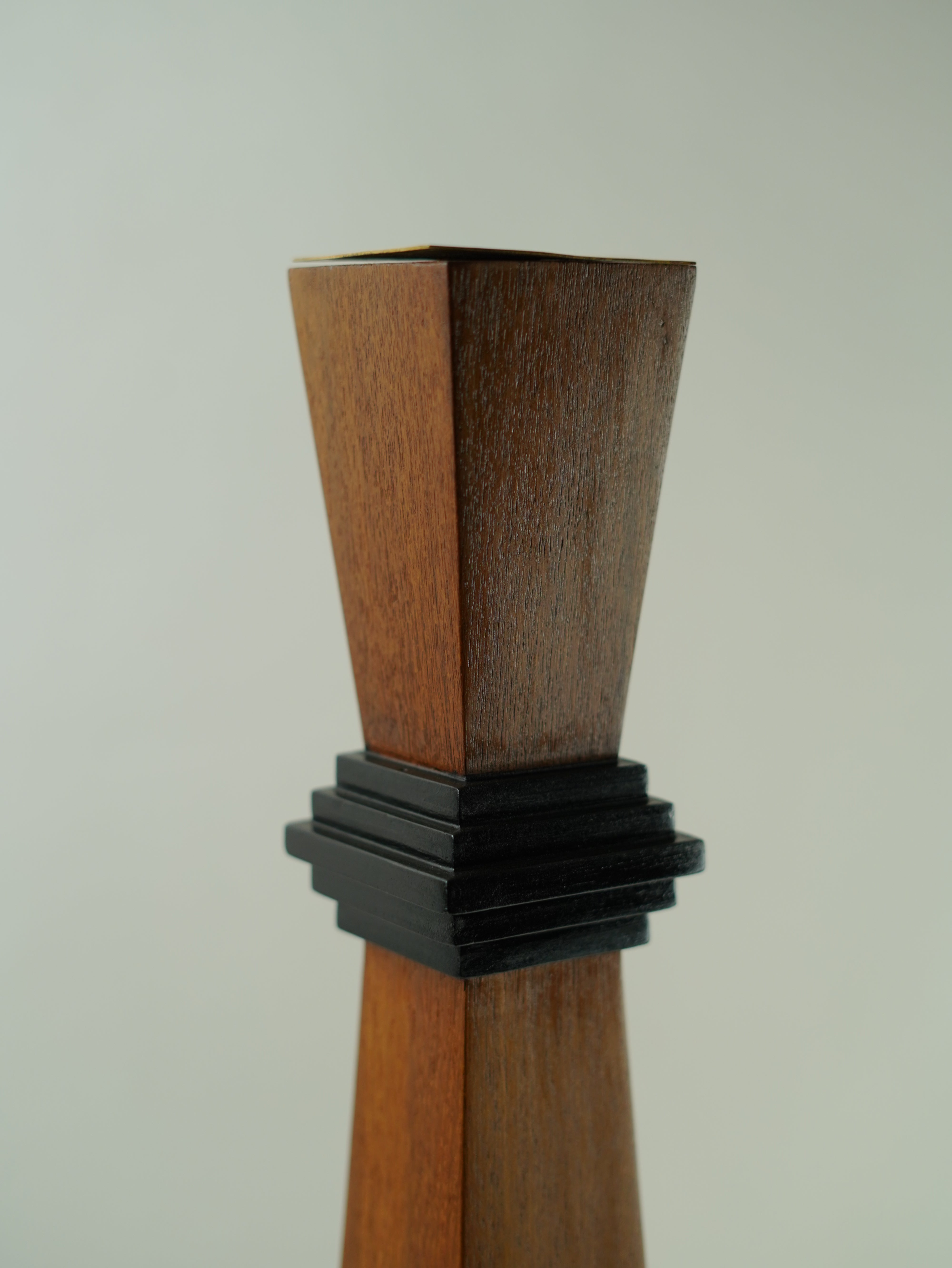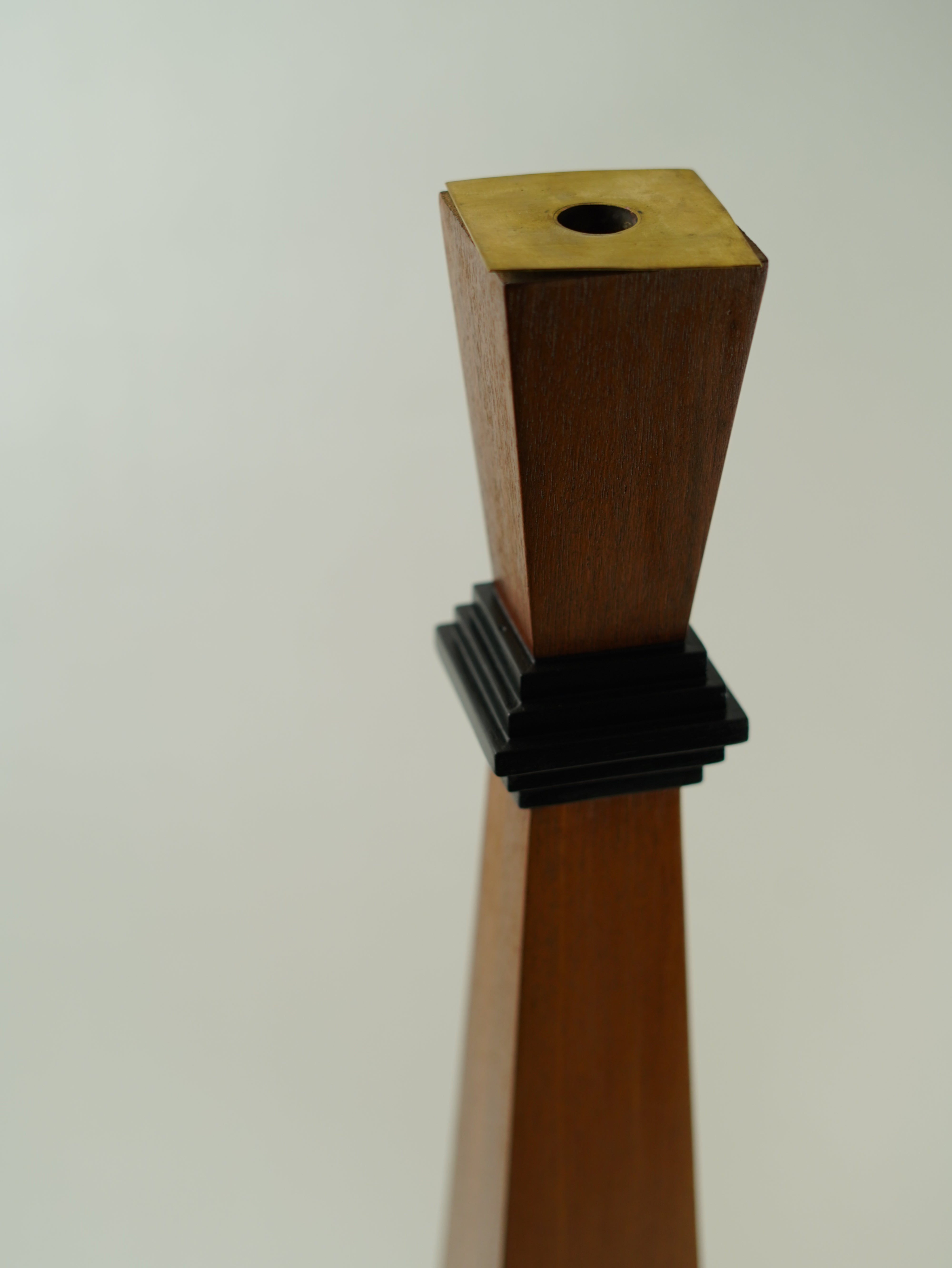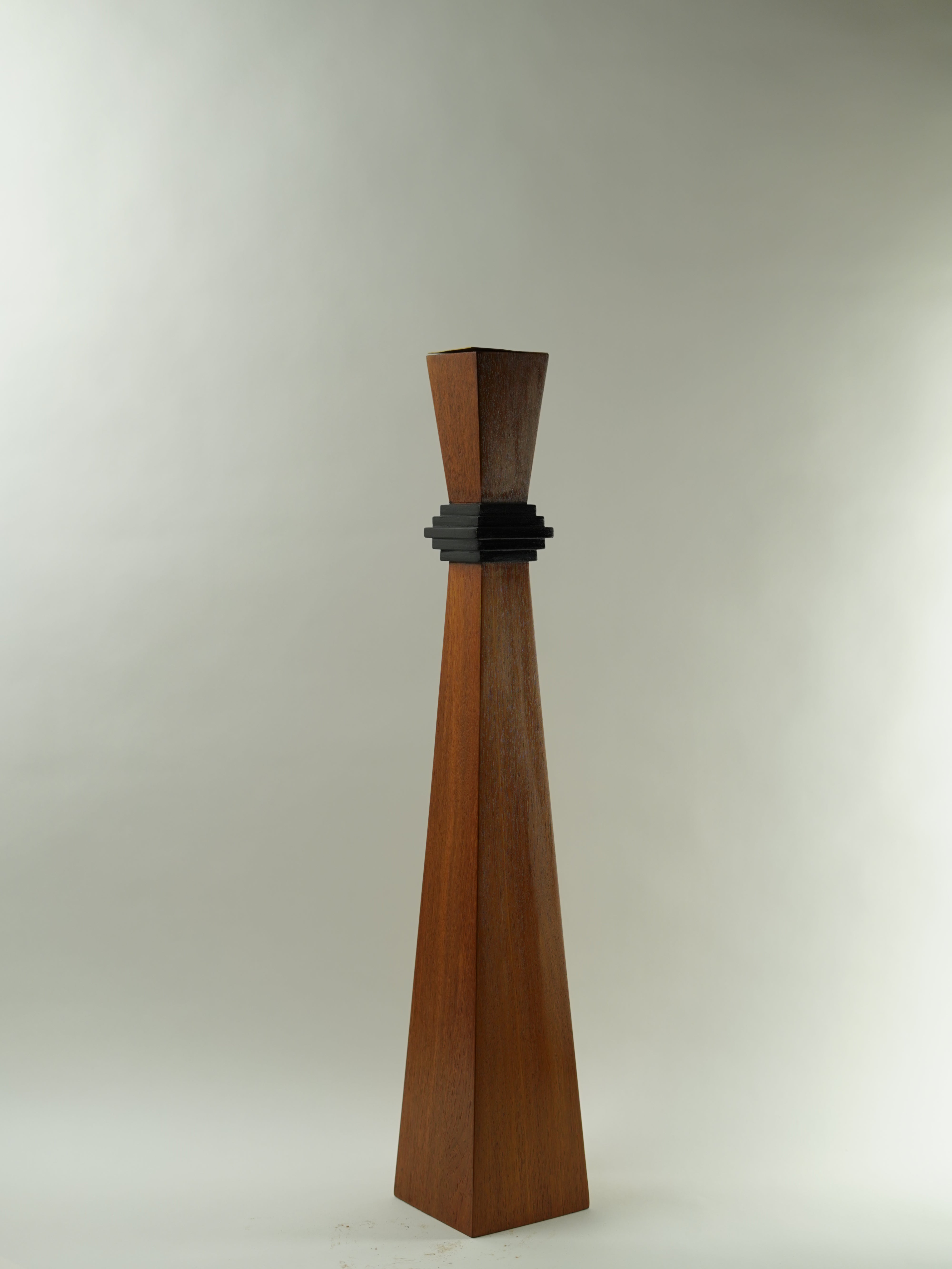 Two differently sized teak wood cones come together to create a candle stand that is smart and contemporary.
